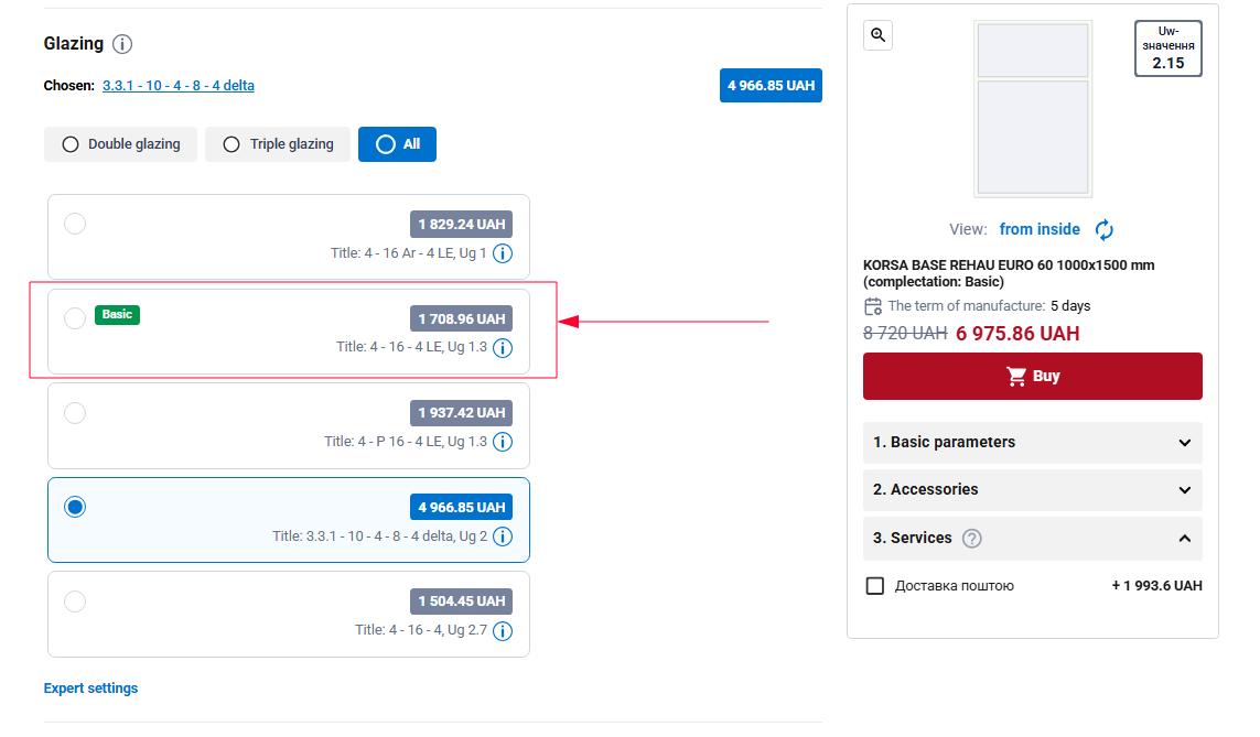 - Category: Double-glazed windows. The resulting price consists of three parts